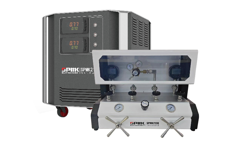 SPMK213G-D电动气体减压器校验装置的气源运用数字控制、多级增压技术,快速输出高稳定性的压力。通过控制台上的精密阀控制需要的压力,满足工业现场及实验室校准或测试气体减压器、普通压力表及压力变送器、压力开关等的要求。