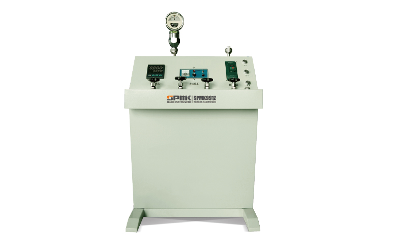 SPMK991Z耐(抗)振压力表校验台。针对各级计量部门因无法模拟现场工况,所以对耐(抗)振压力表往往采用的静态测试方法,这样测试根本无法检定工作现场的介质脉动和环境振动对压力表显示精度的影响。为此,我们综合了多家计量测试部门的经验,以中国石油天然气股份有限公司耐(抗)振压力表计量检定规程:SY/T6817-2010标准,精心设计开发了本产品。